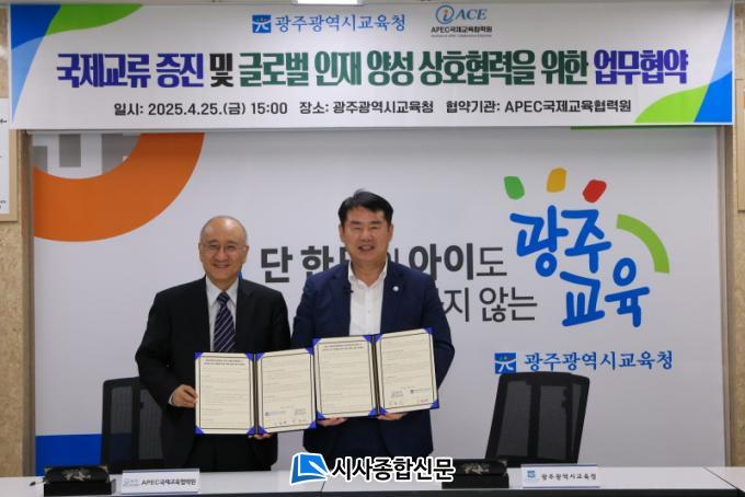 ÀÌÁ¤¼± ±³À°°¨Àº 25ÀÏ º»Ã» »óȲ½Ç¿¡¼ APEC±¹Á¦±³À°Çù·Â¿ø ¹Úµ¿¼± ÀÌ»çÀå°ú ¡®±¹Á¦±³·ù ÁõÁø ¹× ±Û·Î¹ú ¹Ì·¡ ÀÎÀç ¾ç¼ºÀ» À§ÇÑ ¾÷¹«Çù¾à¡¯(MOU)À» ü°áÇß´Ù.