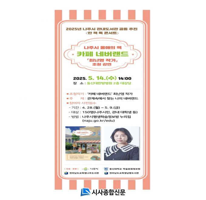 | ³ªÁÖ½Ã, ¿ÃÇØÀÇ Ã¥ ¡®Ä«Æä ³×¹ö·£µå¡¯ ÃÖ³¿µ ÀÛ°¡ ÄܼƮ °³ÃÖ ¿À´Â 5¿ù 14ÀÏ µ¿½Å´ë Çѹ溴¿ø ´ë°´ç¡¦¼±Âø¼ø 150¸í ¸ðÁý |