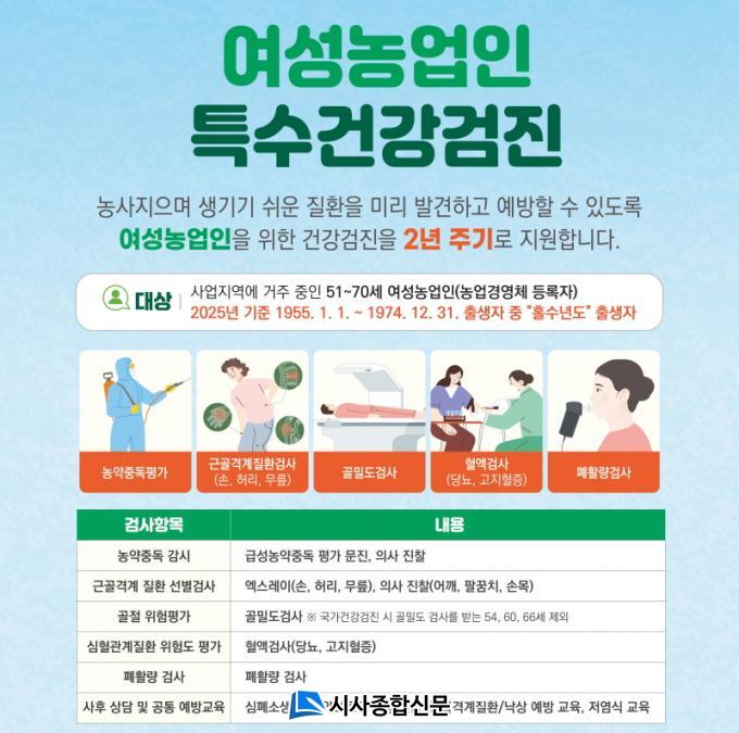 [½Ã»çÁ¾ÇսŹ® = ¿À½ÂÅà ±âÀÚ] ¿©¼ö½Ã(½ÃÀå Á¤±â¸í)´Â ¿©¼º³ó¾÷ÀÎÀÇ ³óÀÛ¾÷ Áúȯ ¿¹¹æ°ú °Ç°º¹Áö ÁõÁøÀ» À§ÇØ 2025³âµµ ¿©¼º³ó¾÷ÀΠƯ¼ö°Ç°°ËÁø »ç¾÷À» ½ÃÇàÇÑ´Ù°í ¹àÇû´Ù.