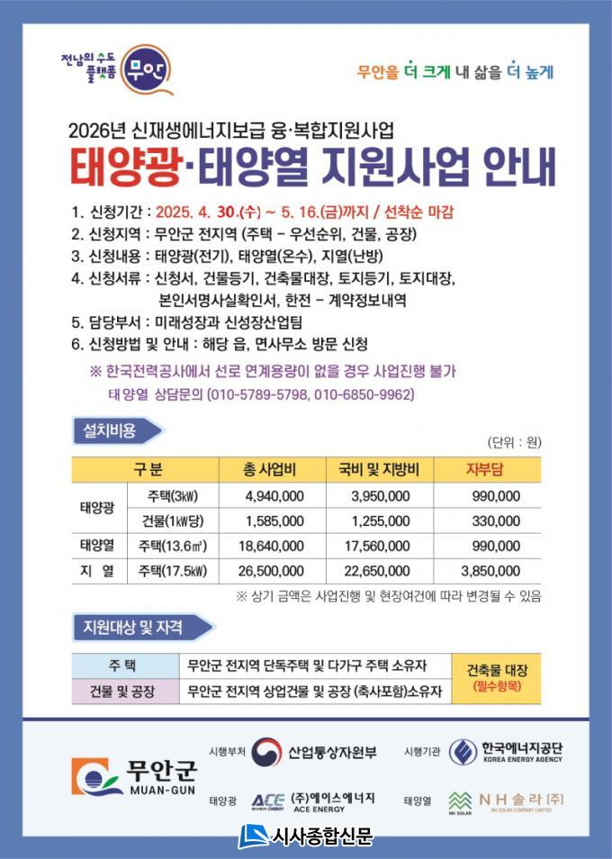 ÁÖÅÿ¡ ž籤 ¹ßÀü¼³ºñ(3kW)¸¦ ¼³Ä¡ÇÏ¸é ¿¬°£ ¾à 60¸¸ ¿ø(¿ù 5¸¸ ¿ø) ÀÌ»óÀÇ Àü±â¿ä±Ý Àý°¨ È¿°ú°¡ ¿¹»óµÅ ÁֹεéÀÇ ³ôÀº °ü½É°ú È£ÀÀÀ» ¹ÞÀ» °ÍÀ¸·Î ±â´ëµÈ´Ù.½ÅûÀº ¿À´Â 30ÀϺÎÅÍ 5¿ù 16ÀϱîÁö À¾¸é»ç¹«¼Ò¸¦ ¹æ¹®ÇØ ½ÅûÇÏ¸é µÇ¸ç, ÀÚ¼¼ÇÑ »çÇ×Àº ¹Ì·¡¼ºÀå°ú ½Å¼ºÀå»ê¾÷ÆÀ(061-450-4193)À¸·Î ¹®ÀÇÇÏ¸é µÈ´Ù.