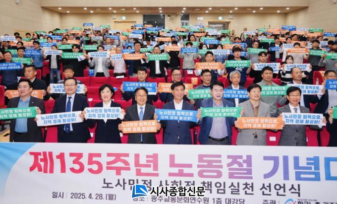 À̳¯ ±â³ä½Ä¿¡¼ ±¤ÁÖ ³ë»ç¹ÎÁ¤Àº ¡®»çȸÀû Ã¥ÀÓ ½Çõ ¼±¾ð¡¯À» ÅëÇØ ±¤ÁÖÇü ÀÏÀÚ¸®ÀÇ Áö¼Ó°¡´É¼º¿¡ ´ëÇÑ ÀÇÁö¸¦ ¹àÇû´Ù.