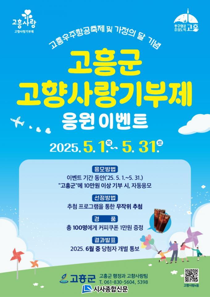 À̺¥Æ® ±â°£Àº 5¿ù ÇÑ ´Þ°£À̸ç, °íÈﱺ¿¡ 10¸¸ ¿ø ÀÌ»ó ±âºÎÇÑ »ç¶÷Àº ÀÚµ¿À¸·Î ÀÀ¸ðµÈ´Ù. ±âºÎÀÚ Áß 100¸íÀ» ¹«ÀÛÀ§·Î ÃßÃ·ÇØ 1¸¸ ¿ø »ó´çÀÇ Ä¿ÇÇ ÄíÆùÀ» ÁõÁ¤Çϸç, ´ç÷ÀÚ´Â 6¿ù Áß °³º° Å뺸ÇÒ ¿¹Á¤ÀÌ´Ù.