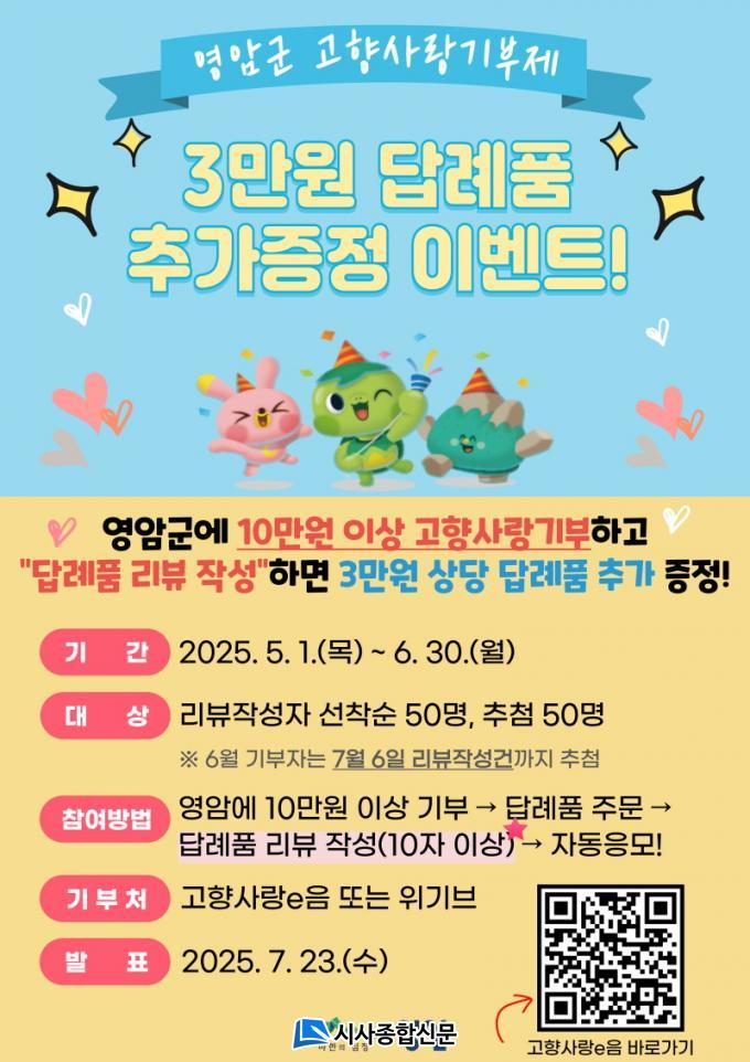 Áö¿ª Ư»ê¹° È«º¸¿Í °íÇâ»ç¶û±âºÎ ÃËÁøÀ» À§ÇÑ À̹ø Çà»ç´Â, ¿µ¾Ï±º¿¡ 10¸¸¿ø ÀÌ»ó ¿µ¾Ï»ç¶û±âºÎÇϰí, ´ä·Êǰ ¸®ºä¿¡ 10ÀÚ ÀÌ»ó ÀÛ¼ºÇÑ ±âºÎÀÚ¸¦ À§ÇÑ °Í.