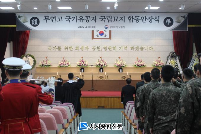 ±¤ÁÖÁö¹æº¸ÈÆÃ»Àå(ûÀå ±è¼®±â)ÀÌ ÁÖ°üÇÏ´Â ÇÕµ¿¾ÈÀå½ÄÀÌ ÀÓ½ÇÈ£±¹¿ø¿¡¼ °ÅÇàµÇ¾ú´Ù. À̳¯ ÀÓ½ÇÈ£±¹¿ø¿¡´Â ÂüÀüÀ¯°øÀÚÀÇ À¯ÇØ 3À§°¡ ¾ÈÀåµÇ¾úÀ¸¸ç, ¾ÈÀå½Ä¿¡´Â ´ëÇѹα¹ Àü¸ô±º°æÀ¯Á·È¸ µî º¸ÈÆ´Üü¿Í À°±º °ü°èÀÚ,°æÂû¼Àå, Á¾±³´Üü µî 120¿© ¸íÀÌ Âü¼®ÇÏ¿´´Ù.