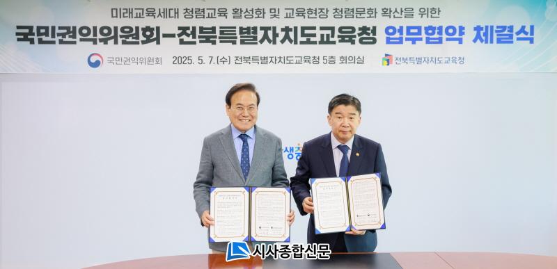ÀüºÏ±³À°Ã»Àº 7ÀÏ µµ±³À°Ã» 5Ãþ ȸÀǽǿ¡¼ ±¹¹Î±ÇÀÍÀ§¿øÈ¸¿Í û·ÅÀÎÀç ¾ç¼º ¹× ±³À°ÇöÀå û·Å¹®È È®»êÀ» À§ÇÑ ¾÷¹«Çù¾àÀ» ü°áÇß´Ù.