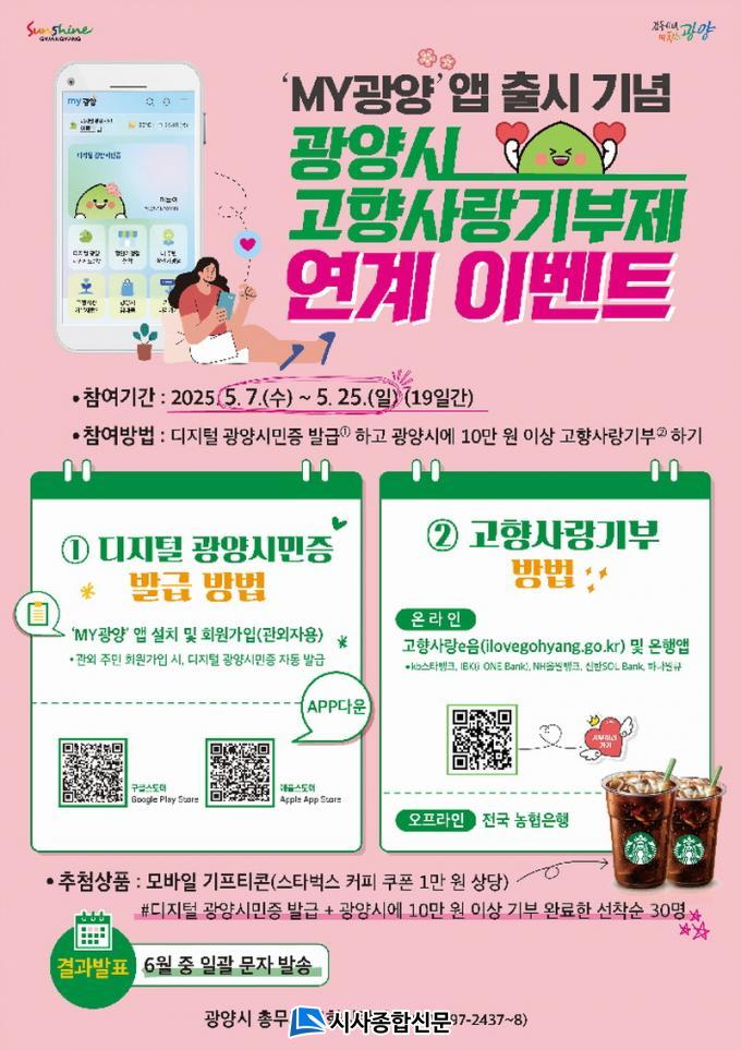 [½Ã»çÁ¾ÇսŹ® = Àå¹Î±Ô ±âÀÚ] ±¤¾ç½Ã´Â µðÁöÅÐ Á¾ÇÕ ÇàÁ¤ Ç÷§ÆûÀÎ ¸ð¹ÙÀÏ ¾Û ¡®MY±¤¾ç¡¯ Ãâ½Ã¸¦ ±â³äÇØ ¡®µðÁöÅÐ ±¤¾ç½Ã¹ÎÁõ¡¯ ¹ß±ÞÀ» µ¶·ÁÇϰí, °íÇâ»ç¶û±âºÎÁ¦¸¦ Ȱ¼ºÈÇϱâ À§ÇÑ ¿¬°è À̺¥Æ®¸¦ 5¿ù 7ÀϺÎÅÍ 25ÀϱîÁö ÁøÇàÇÑ´Ù°í 7ÀÏ ¹àÇû´Ù.