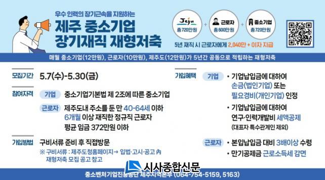 ¡®Áß¼Ò±â¾÷ Àå±âÀçÁ÷ ÀçÇüÀúÃ࡯Àº µµ³» Áß¼Ò±â¾÷¿¡ 6°³¿ù ÀÌ»ó ÀçÁ÷ÇÑ ¸¸ 40-64¼¼ ÁßÀå³â ±Ù·ÎÀÚ¸¦ ´ë»óÀ¸·Î ÇÑ´Ù. Á¦ÁÖµµ-±â¾÷-±Ù·ÎÀÚ°¡ ¸Å´Þ °øµ¿À¸·Î ±Ý¾×À» Àû¸³Çϰí, ¸¸±â ±Ù¼Ó ½Ã À̸¦ ¼º°ú±Ý ÇüÅ·ΠÁö±ÞÇÏ´Â Á¦µµÀÌ´Ù.