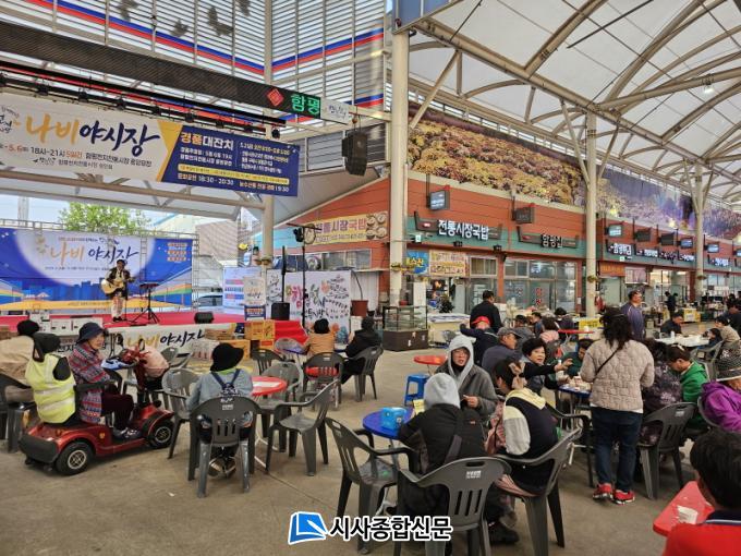 ¡®³ªºñ¾ß½ÃÀ塯Àº ÇÔÆòõÁöÀüÅë½ÃÀå»óÀÎȸ ÁÖ°üÀ¸·Î Áö³ 5¿ù 2ÀϺÎÅÍ 6ÀϱîÁö 5Àϰ£ ¿ÀÈÄ 6½ÃºÎÅÍ 9½Ã±îÁö °³ÃÖµÆÀ¸¸ç ¹®È°ø¿¬¡¤1,000¿ø °æ¸Å¡¤°æÇ° Ãß÷¡¤ÀüÅë³îÀÌ Ã¼Çè µî ´Ù¾çÇÑ ÇÁ·Î±×·¥ÀÌ ¸¶·ÃµÅ ÃàÁ¦ÀÇ ¹ãÀ» dz¼ºÇÏ°Ô Ã¤¿ü´Ù.