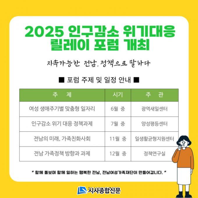 Àü³²¿©¼º°¡Á·Àç´Ü ¼ºÇý¶õ ¿øÀåÀº ¡°Àα¸¹®Á¦´Â Áö¿ª»çȸÀÇ Áö¼Ó °¡´É¼ºÀ» À§ÇùÇÏ´Â °¡Àå Å« °úÁ¦ Áß Çϳª¡±¶ó¸ç ¡°À̹ø Æ÷·³ÀÌ ¹Î°üÀÌ ÇÔ²² ÇØ°áÃ¥À» ã´Â ¼ÒÅë°ú Çù·ÂÀÇ ÀåÀÌ µÇ±â¸¦ ±â´ëÇÑ´Ù¡±°í ¹àÇû´Ù.