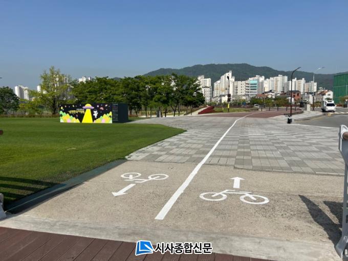ÀÚÀü°Å ¾È³»¼±µµ Áß¾Ó¼±°ú ¸¶Å©¸¦ ¼±¸íÇÏ°Ô µµ»öÇÏ¿© ÀÚÀü°Å µ¿¼±À» ¸íÈ®È÷ ÇÔÀ¸·Î½á ±¤Àå ÁøÀÔÀ¸·Î ÀÎÇÑ Àܵð ÈѼÕÀ» ¹æÁöÇϰí, µ¿Ãµº¯ ¾È³»·Î ÀÚÀü°Å ÀÌ¿ëÀÚ¿Í º¸ÇàÀÚ ¸ðµÎ ¾ÈÀüÇÏ°í Æí¸®ÇÏ°Ô ÅëÇàÇÒ ¼ö ÀÖµµ·Ï Çß´Ù.
