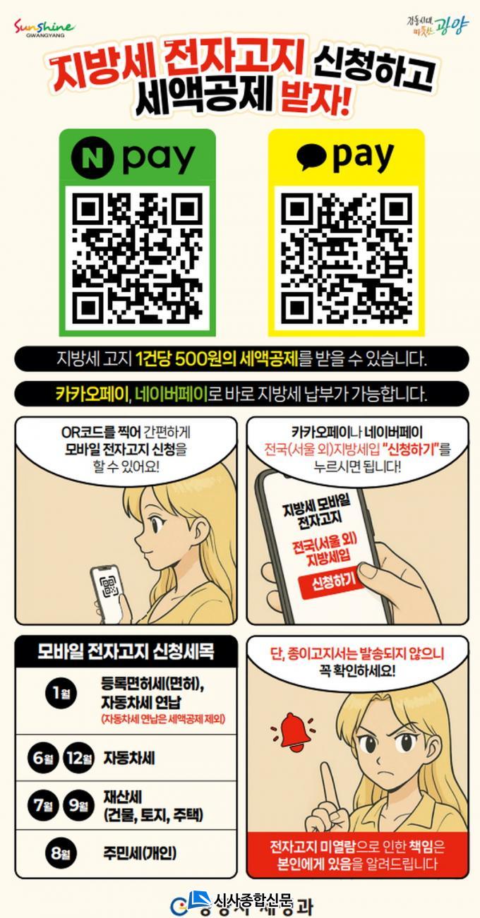 ±¤¾ç½Ã´Â À̹ø ¸ð¹ÙÀÏ ÀüÀÚ°íÁö È®´ë ½ÃÇàÀ» ÅëÇØ Á¾ÀÌ °íÁö¼ ¹ß¼Û¿¡ µû¸¥ ¿¹»ê Àý°¨Àº ¹°·Ð, ³³¼¼ÀÚÀÇ ÆíÀǼº°ú Áö¹æ¼¼ ü³³·ü °¨¼Ò¿¡µµ ±àÁ¤ÀûÀÎ È¿°ú°¡ ÀÖÀ» °ÍÀ¸·Î ±â´ëÇϰí ÀÖ´Ù.