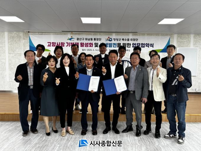 [½Ã»çÁ¾ÇսŹ® = ¿À½ÂÅà ±âÀÚ] ±¤ÁÖ ±¤»ê±¸ Çϳ²µ¿ ÅëÀå´Ü(´ÜÀå ±è¿ë¼·)ÀÌ 14ÀÏ ¿µ±¤±º ¹é¼öÀ¾»ç¹«¼Ò¿¡¼ Àü³² ¿µ±¤±º ¹é¼öÀ¾ ÀÌÀå´Ü(´ÜÀå ¹ÚÁø±¸)°ú °íÇâ»ç¶û±âºÎÁ¦ Ȱ¼ºÈ¸¦ À§ÇÑ Çù¾àÀ» ü°áÇß´Ù.