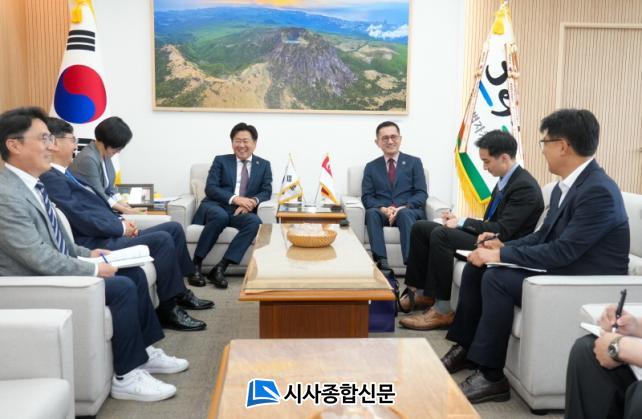 ¿À¿µÈÆ Á¦ÁÖµµÁö»ç´Â 15ÀÏ ÀÌÀÓÀ» ¾ÕµÐ ¿¡¸¯ Å׿À(Eric Teo) ÁÖÇÑ ½Ì°¡Æ÷¸£ ´ë»ç¸¦ Áý¹«½Ç¿¡¼ ¸¸³ª ¾ç Áö¿ª °£ Çù·Â ¼º°ú¸¦ µÇµ¹¾Æº¸°í ÇâÈÄ Çù·Â È®´ë ¹æ¾ÈÀ» ¸ð»öÇß´Ù.