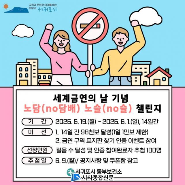 5¿ù 19ÀϺÎÅÍ 6¿ù 1ÀϱîÁö 2ÁÖ°£Àº ¸ð¹ÙÀÏ °È±â ¾Û(¿öÅ©¿Â)À» Ȱ¿ëÇÑ ¡®³ë´ã(no´ã¹è)! ³ë¼ú(no¼ú)! °È±â 縰Áö¡¯°¡ ¿î¿µµÈ´Ù. Âü°¡ÀÚ´Â ¸ñÇ¥ °ÉÀ½ ¼ö¸¦ ´Þ¼ºÇϰí Áö¿ª ³» ±Ý¿¬±¸¿ª Ç¥ÁöÆÇÀ» ã¾Æ ÀÎÁõÇϸé Ãß÷À» ÅëÇØ ¼ÒÁ¤ÀÇ ±â³äǰÀ» ¹ÞÀ» ¼ö ÀÖ´Ù.