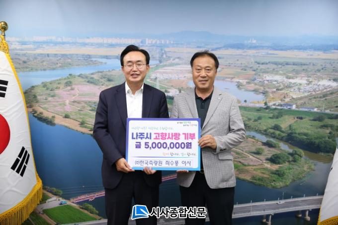 ÃÖ ÀÌ»ç´Â ¡°³ªÁÖ¿¡¼ ±â¾÷À» ¿î¿µÇÏ¸é¼ Áö¿ª°ú ÇÔ²² ¼ºÀåÇÏ´Â ±â¾÷ÀÌ µÇ°íÀÚ °íÇâ»ç¶û±âºÎ±ÝÀ» ±âŹÇß´Ù¡±¸ç ¡°±âºÎ±ÝÀÌ ³ªÁÖÀÇ ¹ßÀüÀ» À§ÇØ À¯¿ëÇÏ°Ô »ç¿ëµÇ±æ ¹Ù¶õ´Ù¡±°í ¸»Çß´Ù.
