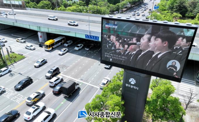 [½Ã»çÁ¾ÇսŹ® = ¿À½ÂÅà ±âÀÚ] ±¤ÁÖ±¤¿ª½Ã(½ÃÀå °±âÁ¤)´Â 18ÀÏ ¿ÀÀü 10½Ã ±¹¸³5¡¤18¹ÎÁÖ¹¦Áö¿¡¼ ¿¸° ¡®Á¦45ÁÖ³â 5¡¤18¹ÎÁÖȿ Á¤ºÎ±â³ä½Ä¡¯À» ¼±¸ °è¼ö±³Â÷·Î¿¡ ¼³Ä¡µÈ ½ÃÁ¤È«º¸ LED Àü±¤ÆÇÀ¸·Î ½Ç½Ã°£ ¼ÛÃâÇß´Ù.