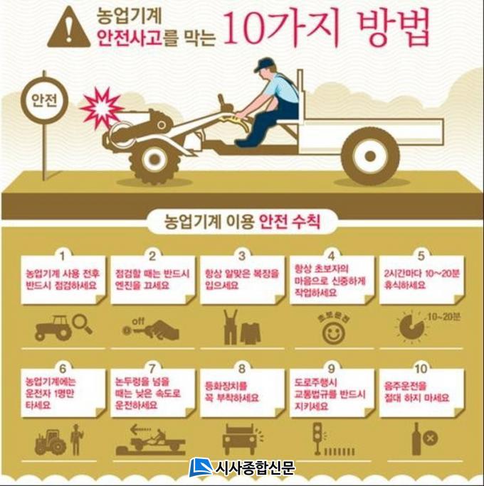 ¼Ò¹æÃ»°ú ³óÃÌÁøÈïû¿¡ µû¸£¸é ³ó±â°è »ç°í´Â ¸Å³â ¿µ³óöÀÎ 3~5¿ù¿¡ ÁýÁßÀûÀ¸·Î ¹ß»ýÇÑ´Ù. ³ó±â°è´Â ³ó¾÷¿¡ ÀÖ¾î Çʼö ÀåºñÁö¸¸ ºÎÁÖÀdzª ¾ÈÀü¼öÄ¢ ¹ÌÁؼö·Î ÀÎÇØ ¸Å³â Å©°í ÀÛÀº »ç°í°¡ ¹Ýº¹µÇ°í ÀÖ¾î »ç¿ë¿¡ °¢º°ÇÑ ÁÖÀǰ¡ ÇÊ¿äÇÏ´Ù.