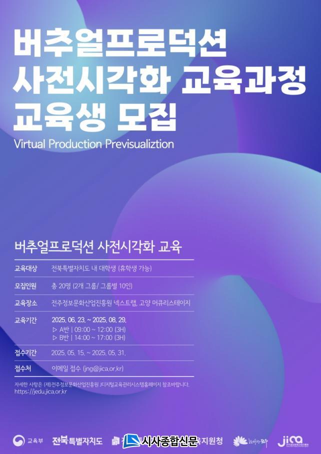 ÀüÁÖ½Ã¿Í ÁøÈï¿øÀº ÀüÁֽᤴëÇѹα¹ÀÇ ¿µÈ»ê¾÷À» À̲ø Â÷¼¼´ë Àü¹® Àη ¾ç¼º°ú ¹öÃß¾ó ÇÁ·Î´ö¼Ç »ê¾÷ Àúº¯ È®´ë¸¦ ¸ñÇ¥·Î ÇÑ À̹ø ±³À°À» ÅëÇØ ¡®2034 ¿µÈ¡¤¿µ»ó»ê¾÷ ºñÀü ¹× À°¼º Àü·«¡¯°ú ¿¬°èÇØ ¿µÈ¡¤¹æ¼Û¡¤±¤°í¡¤¾Ö´Ï¸ÞÀÌ¼Ç µî ´Ù¾çÇÑ ÄÜÅÙÃ÷ ºÐ¾ß¿¡¼ Ȱ¿ëµµ°¡ ³ôÀº »çÀü½Ã°¢È ±â¼úÀ» ü°èÀûÀ¸·Î ¹è¿ï ±âȸ¸¦ Á¦°øÇÒ °èȹÀÌ´Ù.