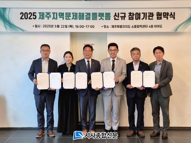 Á¦ÁÖÁö¿ª¹®Á¦ÇذáÇ÷§ÆûÀÇ Á¤Ã¥À§¿øÈ¸ °øµ¿À§¿øÀåÀÎ Á¦ÁÖYMCA ¼Û±ÔÁø »ç¹«ÃÑÀå°ú Á¦ÁÖÆ¯º°ÀÚÄ¡µµ ¾ç¼øÃ¶ Á¤Ã¥±âȹ°üÀ» ºñ·ÔÇÏ¿©, 2025³â ½Å±Ô Âü¿©±â°üÀÎ ¡â(»ç)Á¦ÁÖ¸Þ¼¼³ªÇùȸ ¡âÁ¦ÁÖ½ºÅ¸±â¾÷Çùȸ ¡âÁ¦ÁÖÆ¯º°ÀÚÄ¡µµÁö¼Ó°¡´É¹ßÀüÇùÀÇȸ °ü°èÀÚ°¡ Âü¼®ÇÑ °¡¿îµ¥ Á¦ÁÖÁö¿ª¹®Á¦ÇذáÇ÷§Æû ½Å±Ô Âü¿©±â°ü Çù¾à½ÄÀÌ ÁøÇàµÇ¾ú´Ù.