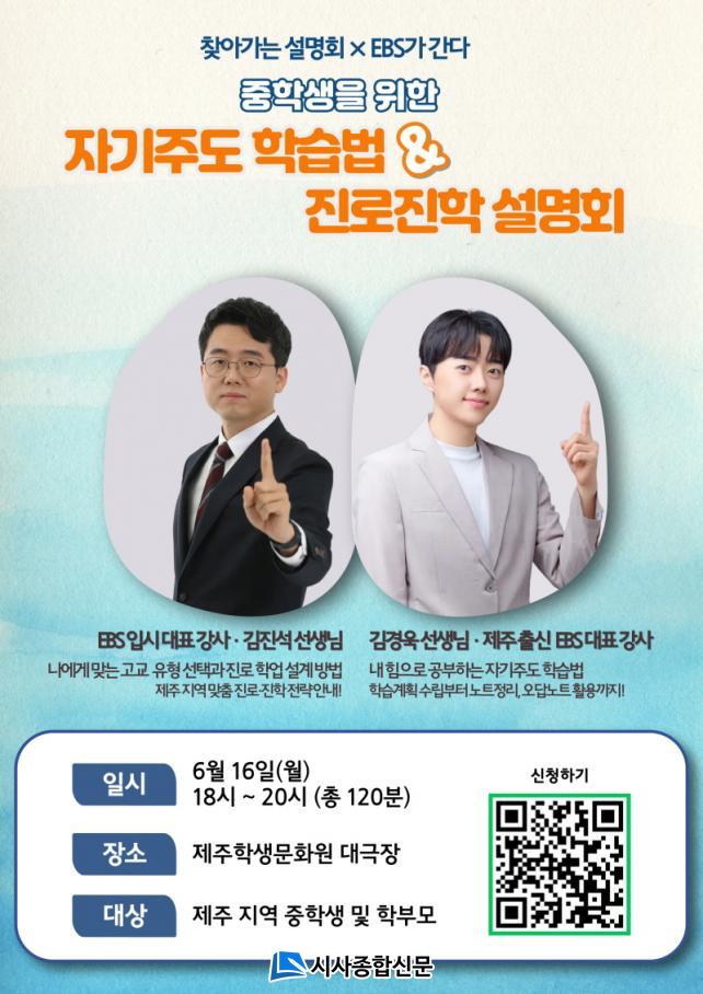 À̹ø ¼³¸íȸ´Â EBS¿ÍÀÇ Çù¾÷À¸·Î ÁøÇàµÇ¸ç Á¦ÁÖ Áö¿ª ÁßÇлý°ú º¸È£ÀÚ¿¡°Ô ½ÇÁúÀûÀÌ°í ±¸Ã¼ÀûÀÎ ÇнÀ Àü·«°ú Áø·Î¡¤ÁøÇÐ Á¤º¸¸¦ Á¦°øÇÏ¿© ÀÚ±âÁÖµµ ÇнÀ ¿ª·® °È ¹× Áö¿ª °£ ±³À° Á¤º¸ °ÝÂ÷ ÇØ¼Ò¸¦ ¸ñÇ¥·Î ÇÑ´Ù.