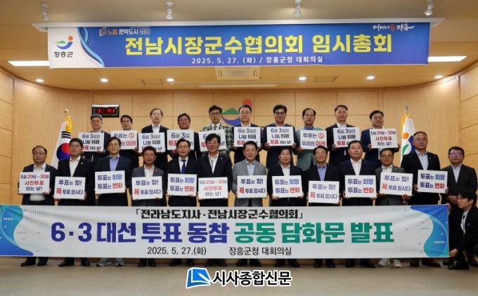 [½Ã»çÁ¾ÇսŹ® = ¿À½ÂÅà ±âÀÚ] Àü³²½ÃÀ屺¼öÇùÀÇȸ(ȸÀå ±è¼º ÀåÈﱺ¼ö)´Â 27ÀÏ ÀåÈﱺû¿¡¼ ÀÓ½ÃÃÑȸ¸¦ °³ÃÖÇϰí Á¦21´ë ´ëÅë·É ¼±°Å ÅõÇ¥À² Á¦°í ´ãȹ®À» ¹ßÇ¥Çß´Ù°í ¹àÇû´Ù.