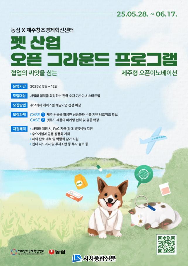 Á¦ÁÖ¼¾ÅÍ¿Í ³ó½ÉÀº Á¦ÁÖ Áö¿ªÀÇ Ã»Á¤ ÀÚ¿ø°ú ¼ÒÀ縦 Ȱ¿ëÇÏ¿© ÆêǪµå¿Í °ü·ÃµÈ Æ¯È ¼ºñ½º ¹× »óǰÀ» °øµ¿ °³¹ßÇϰí, À̸¦ ÅëÇØ ¹Ý·Áµ¿¹° »ê¾÷ÀÇ Æ®·»µå¸¦ È®»ê½Ã۱â À§ÇØ À̹ø ÇÁ·Î±×·¥À» ±âȹÇß´Ù. ¾ç»ç´Â °øµ¿ Çù·ÂÀ» ±â¹ÝÀ¸·Î Æê »ê¾÷°ú °ü·ÃµÈ À¯¸Á ½ºÅ¸Æ®¾÷À» ¹ß±¼ÇÏ°í ½ºÄÉÀϾ÷À» ÅëÇÑ »õ·Î¿î »ç¾÷ ±âȸ¸¦ âÃâÇÑ´Ù´Â °èȹÀÌ´Ù.