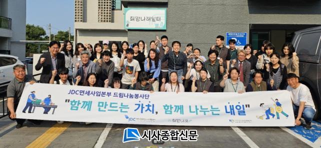 [½Ã»çÁ¾ÇսŹ® = °í¼º¹Î ±âÀÚ] Á¦ÁÖ±¹Á¦ÀÚÀ¯µµ½Ã°³¹ß¼¾ÅÍ(ÀÌ»çÀå ¾ç¿µÃ¶, ÀÌÇÏ JDC) ¸é¼¼»ç¾÷º»ºÎ µå¸²³ª´® ºÀ»ç´Ü¿¡¼´Â 5¿ù 27ÀÏ Àå¾ÖÀÎÁ÷¾÷ÀçȰ½Ã¼³ Èñ¸Á³ª·¡ÀÏÅÍ(¿øÀå ¹ÚÀÎÇâ)¸¦ ¹æ¹®ÇÏ¿© ÁßÁõÀå¾ÖÀλý»êǰÀÎ Á¾À̼îÇÎ¹é ¹× ¹®¼º¸°üÇÔ Á¦ÀÛ¿¡ Âü¿©ÇÏ´Â ºÀ»ç Ȱµ¿À» ÁøÇàÇß´Ù.