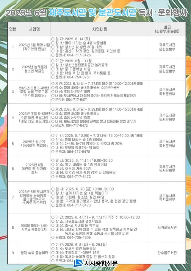 | Á¦ÁÖµµ¼°ü, 6¿ù Áö¿ªÁÖ¹ÎÀ» À§ÇÑ ´Ùä·Î¿î µ¶¼ ¹®È ÇÁ·Î±×·¥ ¿î¿µ ¡®¿Â °¡Á· µµ¼°üÀ¸·Î¡¯6¿ù µ¶¼¡¤¹®È ÇÁ·Î±×·¥ dz¼º |