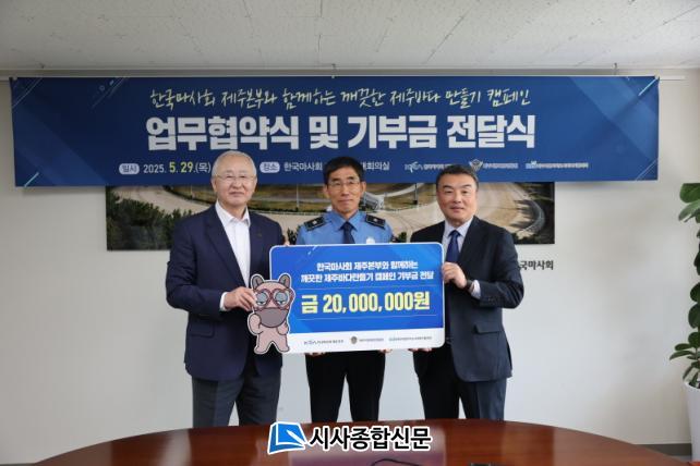 [½Ã»çÁ¾ÇսŹ® = °í¼º¹Î ±âÀÚ] Á¦ÁÖÁö¹æÇØ¾ç°æÂûû(ûÀå ¹Ú»óÃá), Çѱ¹¸¶»çȸ Á¦ÁÖº»ºÎ(º»ºÎÀåÁ÷¹«´ëÇà ¹Ú½Â¿Ï), Á¦ÁÖÆ¯º°ÀÚÄ¡µµ»çȸº¹ÁöÇùÀÇȸ(ȸÀå °í½ÂÈ)´Â Áö³ 5¿ù 29ÀÏ(¸ñ) ¿ÀÀü 10½Ã 30ºÐ, Çѱ¹¸¶»çȸ Á¦ÁÖº»ºÎ ȸÀǽǿ¡¼ ÇØ¾çȯ°æ º¸Àü°ú Áö¿ª»çȸ º¹Áö Çâ»óÀ» À§ÇÑ 3ÀÚ°£ ¾÷¹«Çù¾à(MOU) ü°á ¹× ±âºÎ±Ý Àü´Þ½ÄÀ» ÁøÇàÇß´Ù.