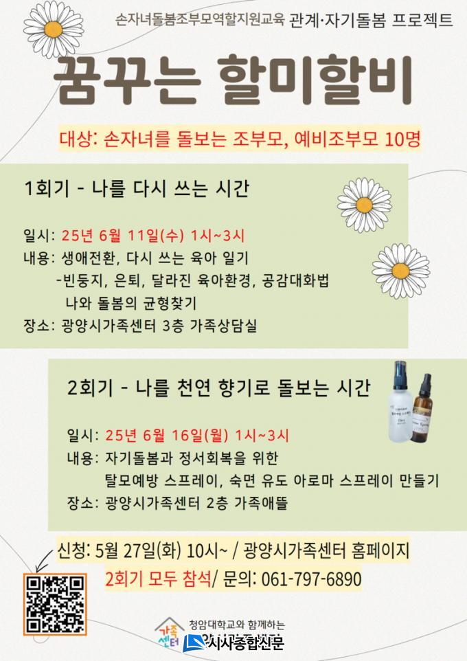 ¡®²Þ²Ù´Â ÇÒ¹ÌÇÒºñ¡¯ ÇÁ·Î±×·¥ °ü·Ã ¹®ÀÇ ¹× Âü¿© ½ÅûÀº ±¤¾ç½Ã°¡Á·¼¾ÅÍ È¨ÆäÀÌÁö ¶Ç´Â ÀüÈ(¢Ï061-797-6890)¸¦ ÅëÇØ °¡´ÉÇÏ´Ù.