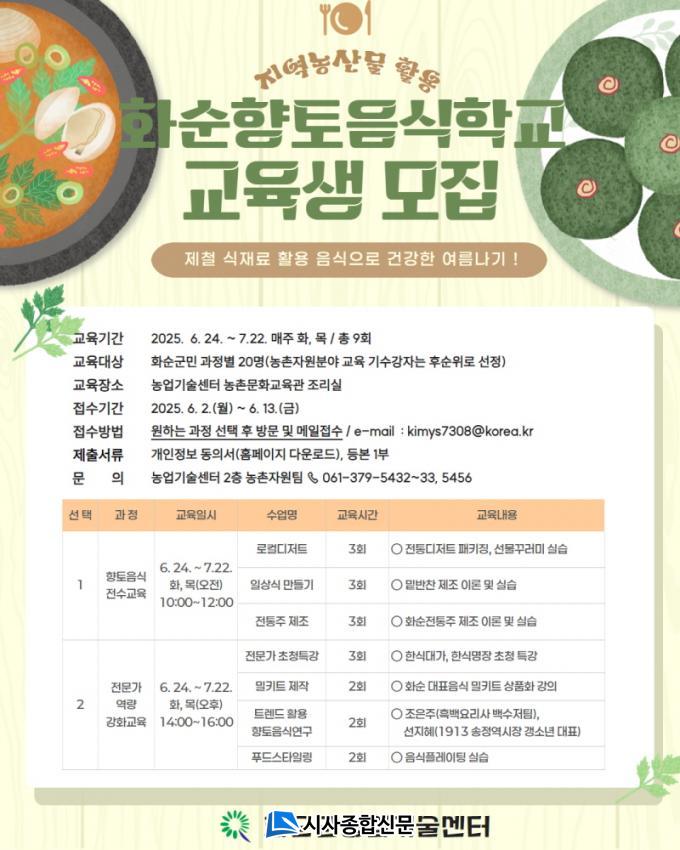 ±³À°Àº 6¿ù 24ÀÏ °³°Çϸç, °¢ °úÁ¤Àº ÃÑ 9ȸ·Î ¸ÅÁÖ È¿äÀϰú ±Ý¿äÀÏ¿¡ ÁøÇàµÈ´Ù. ±³À°ºñ¿Í Àç·áºñ´Â Àü¾× ¹«·á´Ù. ¸ðÁýÀοøÀº °úÁ¤º° 20¸íÀ̸ç, ȼø±º¿¡ ÁÖ¼ÒÁö¸¦ µÐ ±º¹Î Áß ÇâÅäÀ½½Ä¿¡ °ü½É ÀÖ´Â ÁÖ¹ÎÀ̳ª °ü·ÃºÐ¾ß °»ç·Î Ȱµ¿ ÁßÀÎ »ç¶÷ÀÌ¸é ½ÅûÇÒ ¼ö ÀÖ´Ù.