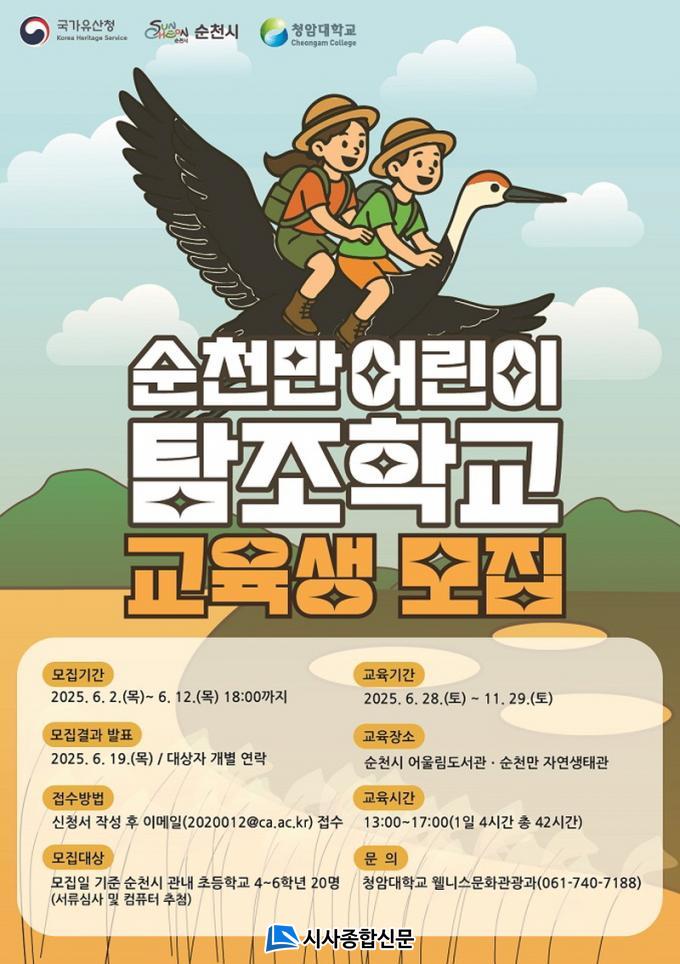 ¸ðÁý´ë»óÀº ¼øÃµ½Ã¿¡ °ÅÁÖÇÏ´Â °ü³» ÃʵîÇлý 4 ~ 6Çгâ»ýÀ̸ç, ¼·ù½É»ç ÈÄ ¹«ÀÛÀ§ Àü»êÃß÷À» ÅëÇØ ¼±¹ßÇϰí, °á°ú´Â ¿À´Â 19ÀÏ¿¡ °³º° ÅëÁöµÈ´Ù. ±³À°À» Èñ¸ÁÇÏ´Â ÇлýÀº ¼øÃµ½Ãû ¶Ç´Â û¾Ï´ëÇб³ ´©¸®Áý¿¡ °Ô½ÃµÈ ÀڷḦ Âü°íÇÏ¿©, °ü·Ã ¼·ù¸¦ ³»·Á¹Þ¾Æ ÀÛ¼ºÇÑ µÚ ÀüÀÚ¿ìÆí(2020012@ca.ac.kr)À¸·Î Á¦ÃâÇÏ¸é µÈ´Ù. ±âŸ ÀÚ¼¼ÇÑ »çÇ×Àº û¾Ï´ëÇб³ À£´Ï½º¹®È°ü±¤°ú(061-740-7188)·Î ¹®ÀÇÇÏ¸é µÈ´Ù.