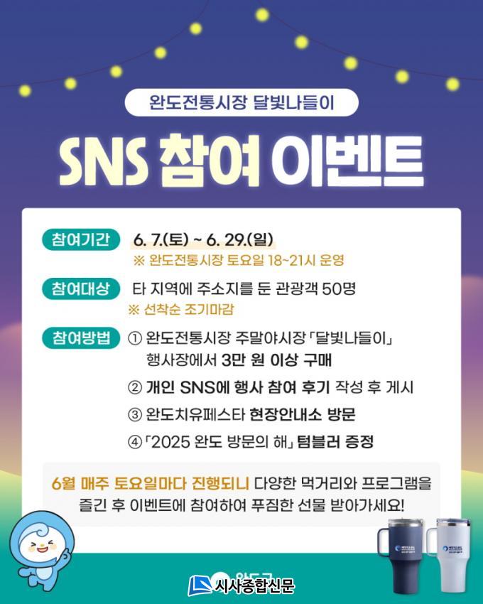 50¸í¿¡°Ô ¡®2025 ¿Ïµµ ¹æ¹®ÀÇ ÇØ¡¯ ±â³äǰ(ÅÒºí·¯)À» ÁõÁ¤ÇÒ °èȹÀÌ´Ù. Âü¿© ¹æ¹ýÀº ¿ÏµµÄ¡À¯Æä½ºÅ¸ ÇöÀå »ç¹«¼Ò(¿ÏµµÀ¾ ÇØº¯°ø¿ø·Î84)¸¦ ¹æ¹®ÇØ ¿ÏµµÀüÅë½ÃÀå ÀÌ¿ë ¿µ¼öÁõ(3¸¸ ¿ø ÀÌ»ó)°ú ¾ß½ÃÀå ¹æ¹® Èı⸦ ¿Ã¸° SNS¸¦ ÀÎÁõ ¹ÞÀ¸¸é µÈ´Ù.