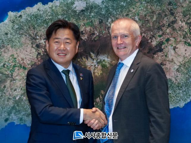 ¿À¿µÈÆ Á¦ÁÖµµÁö»ç´Â 4ÀÏ ¿ÀÈÄ ½Å¶óÈ£ÅÚ¿¡¼ ½ºÆ©¾îÆ® ¸Å±â´Ï½º IUCN »ç¹«Â÷Àå°ú ¸é´ãÀ» °®°í ÀÚ¿¬±â¹ÝÇØ¹ý(NBS, Nature based Solutions)À» Æ÷ÇÔÇÑ ´Ù¾çÇÑ È¯°æÁ¤Ã¥ Çù·Â ¹æ¾ÈÀ» ³íÀÇÇß´Ù.