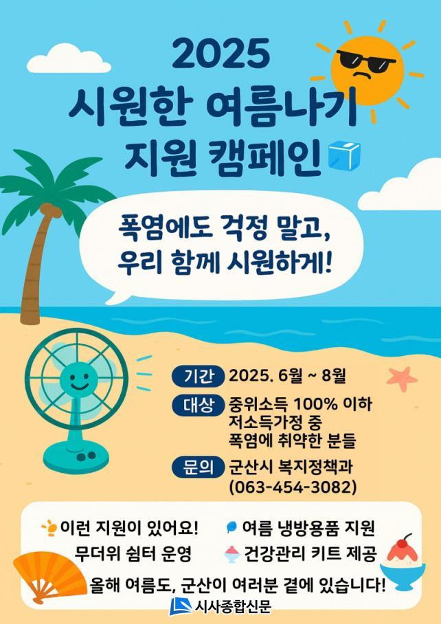¡®2025³â Àú¼Òµæ°¡Á¤ °Ç°ÇÑ ¿©¸§³ª±â Ä·ÆäÀΡ¯ ÈÄ¿ø¿¡ °üÇÑ ÀÚ¼¼ÇÑ »çÇ×Àº ±º»ê½Ã º¹ÁöÁ¤Ã¥°ú(¢Ï063-454-3082)¸¦ ÅëÇØ ¾È³»¹ÞÀ» ¼ö ÀÖ´Ù.