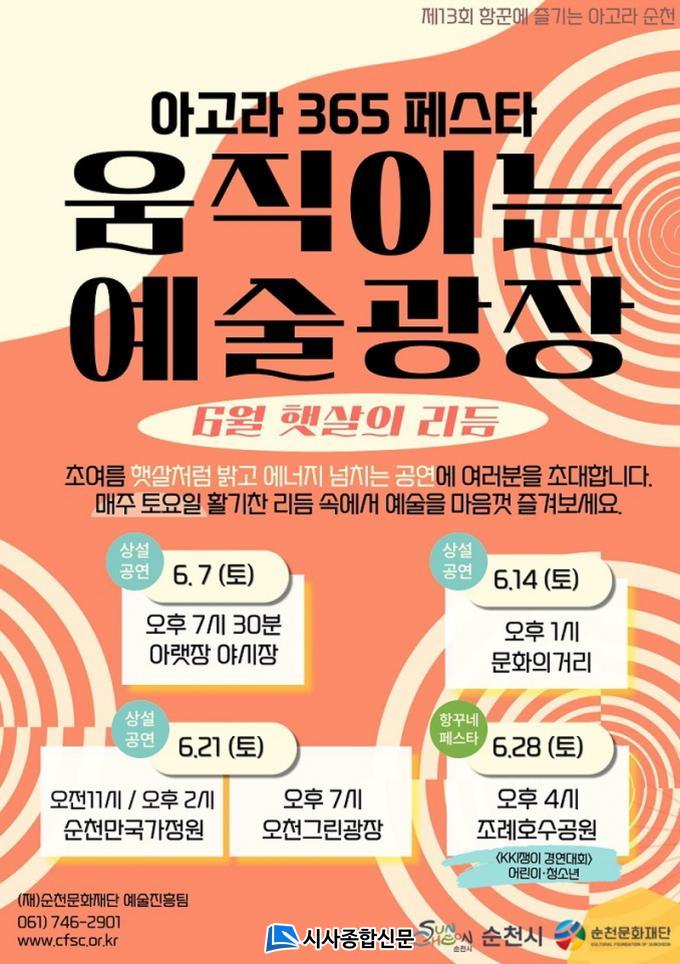 ¼øÃµ¹®ÈÀç´Ü °ü°èÀÚ´Â ¡°½Ã¹Î°ú ¿¹¼úÀÌ ¸¸³ª´Â ¿¸° ¹®È±¤Àå ¡®¾Æ°í¶ó ¼øÃµ¡¯Àº ½Ã¹ÎµéÀÌ Àϻ󿡼 ¿¹¼úÀ» ÀÚ¿¬½º·´°Ô Á¢ÇÏ°í ¸ðµÎ°¡ ÇÔ²² Áñ±â´Â °ø¿¬¹®È¸¦ ¸¸µé±â À§ÇØ 6¿ù¿¡µµ ¼øÃµ µµ½É °÷°÷¿¡¼ ÀÏ»ó ¼Ó ¹®È°ø¿¬À» ÁøÇàÇÒ ¿¹Á¤ÀÌ´Ù¡±¸ç ¡°³ìÀ½ÀÌ Â£¾î°¡´Â °èÀý ÃÊ¿©¸§, ¼øÃµ½Ã °÷°÷¿¡¼ ¾Æ°í¶ó °ø¿¬À» ÇÔ²² Áñ°ÜÁÖ½Ã±æ ¹Ù¶õ´Ù¡±°í ¹àÇû´Ù.
