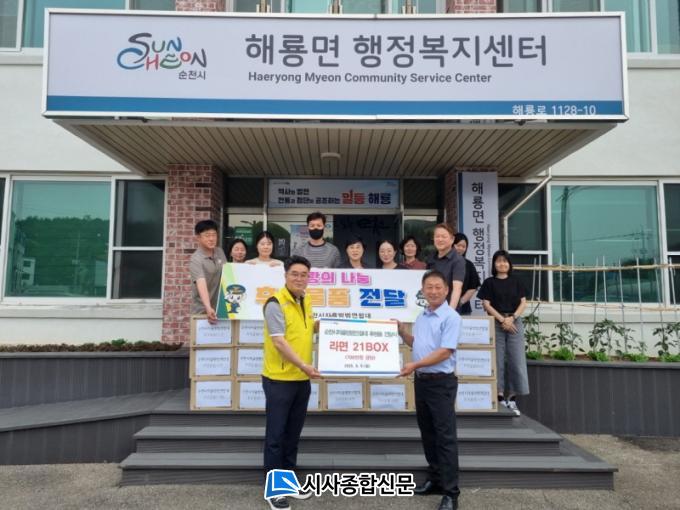[½Ã»çÁ¾ÇսŹ® = Àå¹Î±Ô ±âÀÚ] ¼øÃµ½ÃÀÚÀ²¹æ¹ü¿¬ÇÕ´ë(´ëÀå Â÷±âÂù)´Â Áö³ 9ÀÏ ÇØ·æ¸éÇàÁ¤º¹Áö¼¾ÅÍ¿¡ °ü³» Àú¼ÒµæÃþ °¡±¸¸¦ À§ÇÑ ¶ó¸é 21¹Ú½º(700õ¿ø »ó´ç)ÀÇ ÈÄ¿ø¹°Ç°À» Àü´ÞÇß´Ù°í ¹àÇû´Ù.