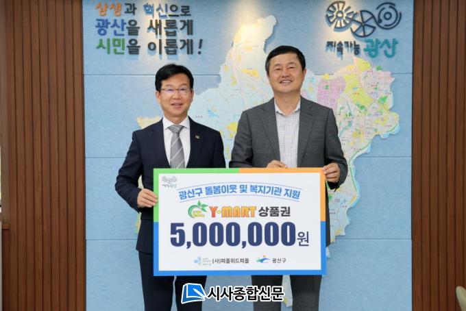 [½Ã»çÁ¾ÇսŹ® = ¿À½ÂÅà ±âÀÚ] ¿ÍÀ̸¶Æ® ºÎ¼³ »ç´Ü¹ýÀÎ ÇÇÇÃÀ§µåÇÇÇÃ(ÀÌ»çÀå ±è¼ºÁø)ÀÌ ±¤»ê±¸ ¡®1313 ÀÌ¿ô»ìÇË¡¯ »ç¾÷À» Áö¿øÇϱâ À§ÇØ 500¸¸ ¿ø »ó´çÀÇ ¸¶Æ® »óǰ±ÇÀ» ÈÄ¿øÇß´Ù.