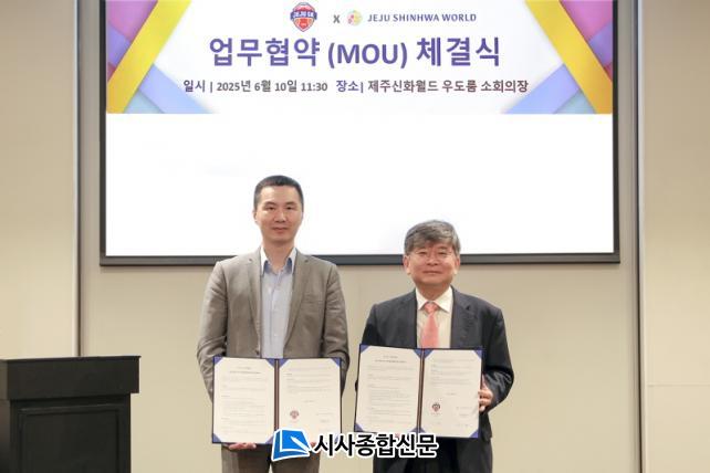 Á¦ÁÖSK FC ±¸Ã¢¿ë ´ëÇ¥ÀÌ»ç´Â "»õ·Î¿î °¡Ä¡¸¦ âÃâÇÒ ¼ö ÀÖ´Â Á¦ÁÖ½ÅÈ¿ùµå¿ÍÀÇ ¸¸³²ÀÌ ±â´ëµÈ´Ù. Á¦ÁÖSK¿Í Á¦ÁÖ½ÅÈ¿ùµå´Â »óÈ£ È«º¸ ¹× ÇÁ·Î¸ð¼Ç °³¹ß ÁøÇàÀ» À§ÇÑ ½Ç¹«ÇùÀÇȸ¸¦ ±¸¼º ¹× ¿î¿µÇÒ ¼ö ÀÖÀ¸¸ç Á¤±âÀûÀΠȸÀǸ¦ ÅëÇØ »óÈ£ Çù·Â ¹æ¾È°ú ½Ã³ÊÁö¿¡ ´ëÇÑ ±¸Ã¼ÀûÀÎ ³»¿ëÀ» Ãß°¡·Î ÇùÀÇÇϰí Á¶Á¤ÇÒ ¼ö ÀÖ´Ù. ¼·Î À©À©ÇÒ ¼ö ÀÖ´Â °ü°è°¡ µÇµµ·Ï À̹ø ¾÷¹« Çù¾àÀ» ÅëÇØ ´õ¿í ³ë·ÂÇϰí Èû¾²°Ú´Ù"¶ó°í ¸»Çß´Ù.