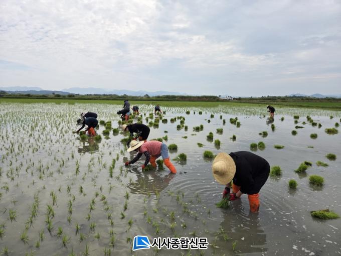 À̳¯ ³óÃÌÀϼյ½±â´Â Á÷¿ø 20¿©¸íÀÌ ³ó±â°è ÁøÀÔÀÌ ¾î·Á¿î ³íÀ» ¹æ¹®ÇØ ¼Õ ¸ð³»±â¸¦ ½Ç½Ã ÇÏ´Â µî ±¸½½¶¡À» ÇÔ²² Èê·È´Ù.
