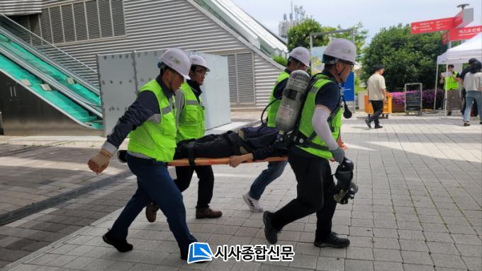 À̹ø ÈÆ·ÃÀº ÈÀç ¹ß»ý »óȲÀ» °¡Á¤ÇØ Àθí ÇÇÇØ¸¦ ¿¹¹æÇϰí Àç»ê ÇÇÇØ¸¦ ÃÖ¼ÒÈÇϱâ À§ÇÑ Ãʱ⠴ëÀÀ ´É·Â °È¿¡ ÁßÁ¡À» µ×À¸¸ç, »ê¼Ò °áÇÌ µî ¹ÐÆó°ø°£ »ç°í¿¡ ´ëÇÑ ´ëÀÀ ÈÆ·Ãµµ ÇÔ²² ÁøÇàµÆ´Ù.