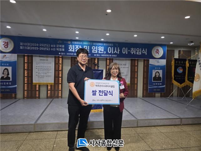 [½Ã»çÁ¾ÇսŹ® = °í¼º¹Î ±âÀÚ] ±¹Á¦·ÎŸ¸®3662Áö±¸ Á¦ÁÖÀºÇϼö·ÎŸ¸®Å¬·´(ȸÀå ¹ÚÁ¤·Ê)Àº Áö³ 11ÀÏ ¾ÆÁ¨ÅäÇÇ¿À·¹ÄÁº¥¼Ç¿¡¼ ȸÀå ¹× ÀÓ¿ø ÀÌ»ç ÀÌ¡¤ÃëÀÓ½Ä Çà»ç¸¦ °¡Áö¸ç Á¦Áֽõ¿¹éÁÖ°£È°µ¿¼¾ÅÍ(¿øÀå Àå¹Î±â)¿¡ ½Ò 340kgÀ» Àü´ÞÇß´Ù.