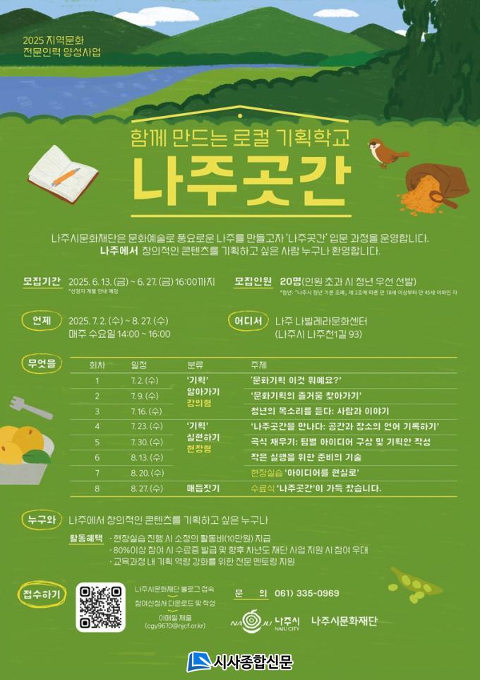 ³ªÁֽù®ÈÀç´Ü(´ëÇ¥ ±èÂùµ¿)Àº ¹®ÈÀÚ¿øÀ» Ȱ¿ëÇÑ ½Ã¹Î Á᫐ ±âȹ ¿ª·® °È¸¦ À§ÇØ ¡®ÇÔ²² ¸¸µå´Â ·ÎÄà ±âȹÇб³ ¡®³ªÁÖ°÷°£¡¯À» °³¼³Çϰí Áö¿ª¹®È¿¡ °ü½É ÀÖ´Â ½Ã¹ÎÀ» ´ë»óÀ¸·Î ±³À° Âü¿©ÀÚ¸¦ ¸ðÁýÇÑ´Ù°í 17ÀÏ ¹àÇû´Ù.
