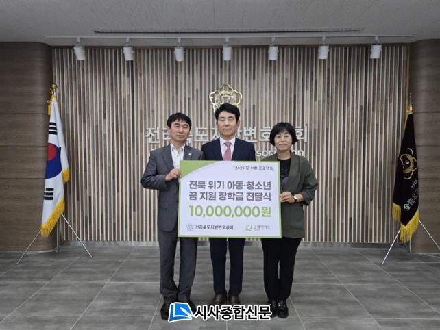 Àü¶óºÏµµÁö¹æº¯È£»çȸ ºÀ»ç´ÜÀº Áö³ 4¿ù, ±Â³×À̹ö½º ÀüºÏÁöºÎ¿Í ÇÔ²² ÀüºÏƯº°ÀÚÄ¡µµ ³» Àú¼Òµæ °¡Á¤, º¹Áö»ç°¢Áö´ë µî À§±â¿¡ óÇÑ ¾Æµ¿¡¤Ã»¼Ò³âµéÀÇ ²ÞÀ» Áö¿øÇϱâ À§ÇØ ¡°2025 ²Þ Áö¿ø ÇÁ·ÎÁ§Æ®¡± ¹ß´ë½ÄÀ» ÁøÇàÇÏ¿´°í, À̹ø ÈÄ¿ø±ÝÀº 50¸íÀÇ ¾Æµ¿¡¤Ã»¼Ò³â¿¡°Ô ÀåÇбÝÀ» Áö¿øÇϱâ À§ÇØ Àü´ÞÇß´Ù.