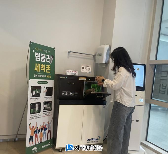 [½Ã»çÁ¾ÇսŹ® = ¿À½ÂÅà ±âÀÚ] °íÈﱺ(±º¼ö °ø¿µ¹Î)Àº ÀÏȸ¿ë ÄÅ »ç¿ëÀ» ÁÙÀÌ°í ´Ùȸ¿ë ÄÅ »ç¿ëÀ» Àå·ÁÇϱâ À§ÇØ ±º û»ç 2Ãþ ±¸³»½Ä´ç ¾Õ¿¡ ÅÒºí·¯ ¼¼Ã´±â¸¦ ½Ã¹ü ¼³Ä¡Çß´Ù°í ¹àÇû´Ù.