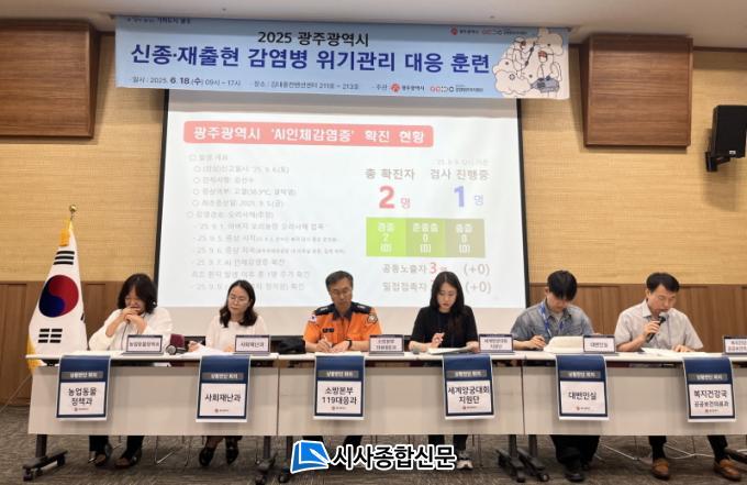 À̹ø ÈÆ·Ã¿¡´Â ±¤ÁÖ½Ã, ±¤Áֽ𨿰º´°ü¸®Áö¿ø´Ü, ÀÚÄ¡±¸ °¨¿°º´‧À糺μ, ¼Ò¹æ¾ÈÀüº»ºÎ, º¸°Çȯ°æ¿¬±¸¿ø, °æÂûû, ÀÇ·á±â°ü µî À¯°ü±â°ü °ü°èÀÚ 80¿©¸íÀÌ Âü¿©Çß´Ù.