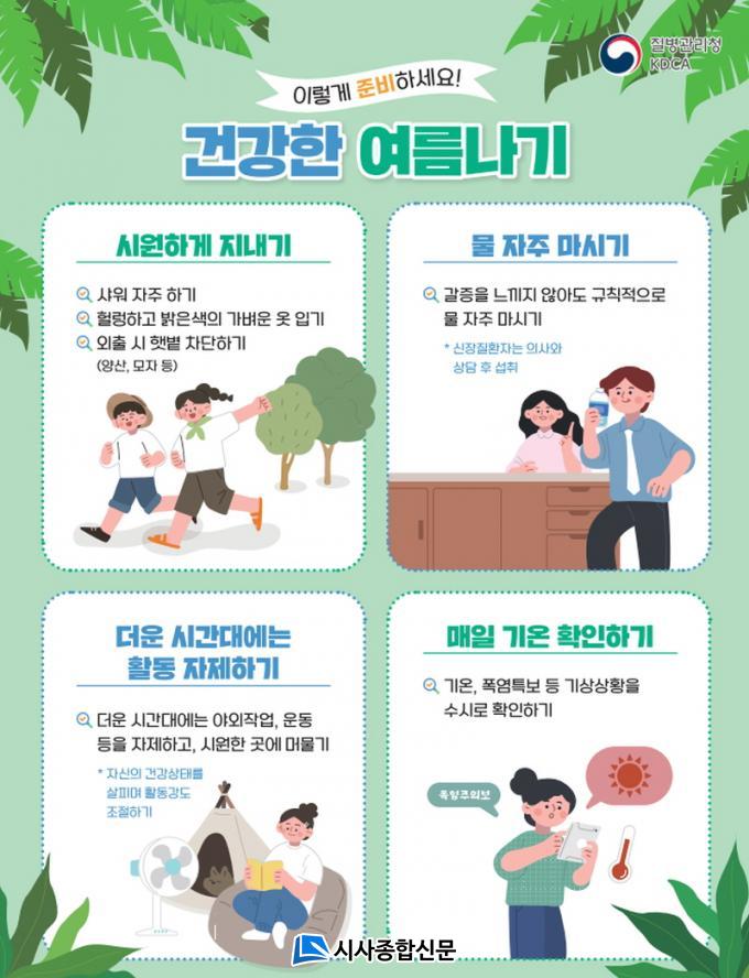 ¿Â¿ÁúȯÀ» ¿¹¹æÇϱâ À§Çؼ´Â ¡ã¼ö½Ã·Î ¹° ¸¶½Ã±â ¡ã½Ã¿øÇÑ °÷¿¡¼ ÈÞ½Ä ÃëÇϱ⠡㠴õ¿î ½Ã°£´ë¿¡´Â ¾ß¿Ü Ȱµ¿ ÀÚÁ¦Çϱ⠵î 3´ë ¼öÄ¢À» ÁöÄÑ¾ß ÇÑ´Ù.