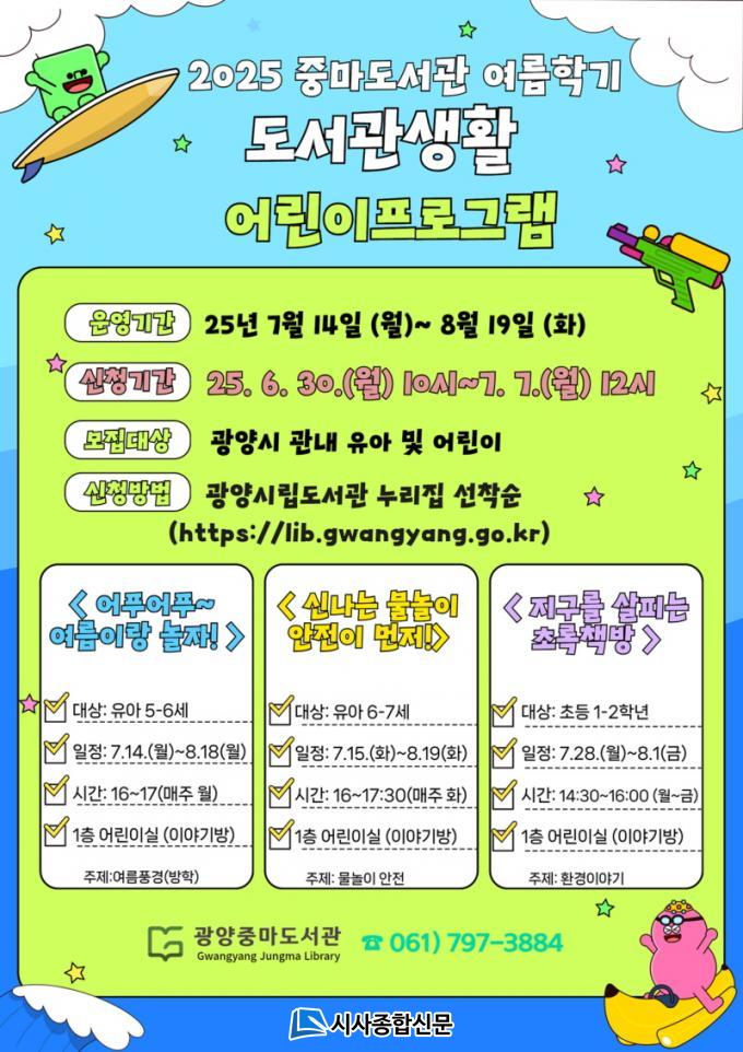 ¼ö° ½ÅûÀº 6¿ù 30ÀÏ(¿ù) ¿ÀÀü 10½ÃºÎÅÍ 7¿ù 7ÀÏ(¿ù)±îÁö ±¤¾ç½Ã¸³µµ¼°ü ´©¸®Áý(lib.gwangyang.go.kr)À» ÅëÇØ ¼±Âø¼øÀ¸·Î ÁøÇàµÈ´Ù. ½ÅûÀº ¹Ýµå½Ã ¼ö°»ý À̸§(¾ÆÀ̵ð)À¸·Î ÇØ¾ß Çϸç, Á¶±â ¸¶°¨µÉ ¼ö ÀÖ¾î ºü¸¥ ½ÅûÀÌ ±ÇÀåµÈ´Ù.
