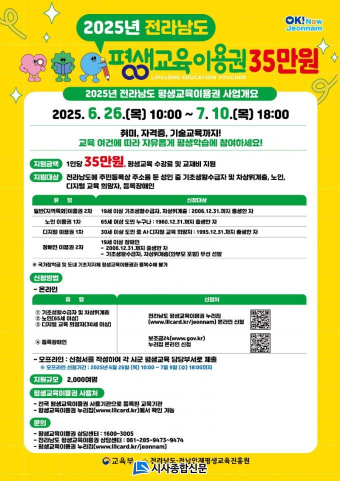 À̹ø 2Â÷ Á¢¼ö´Â ÃÑ 180¸íÀ» ¸ðÁýÇϸç, ½Åû ´ë»óÀº ¡ã±âÃÊ»ýȰ¼ö±ÞÀÚ ¹× Â÷»óÀ§°èÃþ(ÇѺθð Æ÷ÇÔ) ¡ã65¼¼ ÀÌ»ó ¾î¸£½Å ¡ã30¼¼ ÀÌ»ó µðÁöÅÐ ±³À° Èñ¸ÁÀÚ µîÀÌ´Ù. ¼±Á¤µÈ ´ë»óÀÚ¿¡°Ô´Â 1Àδç 35¸¸ ¿øÀÌ Áö¿øµÇ¸ç, Áö¿ø±ÝÀº Æò»ý±³À° ¼ö°·á ¹× ±³Àçºñ·Î »ç¿ëÇÒ ¼ö ÀÖ´Ù.
