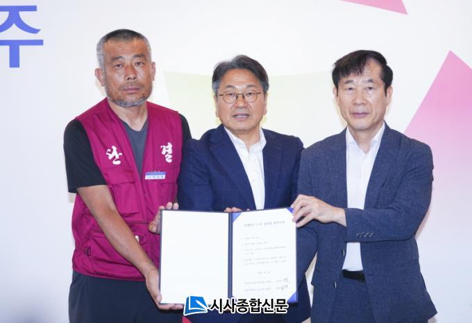 | ±¤ÁÖ±¤¿ª½Ã, ½Ã³»¹ö½º ³ë»ç ÀÓ´ÜÇù ÇÕÀÇ °±âÁ¤ ½ÃÀå ÁßÀç¾È ¼ö¿ë ³ë»ç, ±âº»±Þ 3% Àλó‧Á¤³â 62¼¼ ¿¬Àå‧´ëÁß±³ÅëÇõ½ÅȸÀÇ Âü¿©